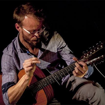 French guitarist and composer Thibault Florent graduated in Jazz Guitar at the "Ecole Nationale de Musique de Villeurbanne" (2007). After spending a few months in NYC, Thibault founded Singe - a trio searching for new pathways between improvisation and noise rock (they received the Composition Award at the "Tremplin Jazz d'Avignon" 2009). Inspired by his stint in Berlin, he developed his 12-string guitar solo called So - lo - lo. He also plays as a duo with French harpist Laura Perrudin, is co-composer of l' Orchestre Ducoin, and plays with pAn-g - a powerful noise rock tentet based in Paris.